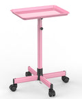 Nice pink salon tray. Solid tray with height adjustments. Wheels roll smoothly. Easy to assemble.