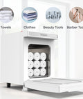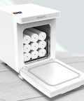 The compact capacity is perfect for storing 6-10Â face or hand towels in regular sizes, ready for back-to-back appointments. The convenient top-opening design allows for easy access.